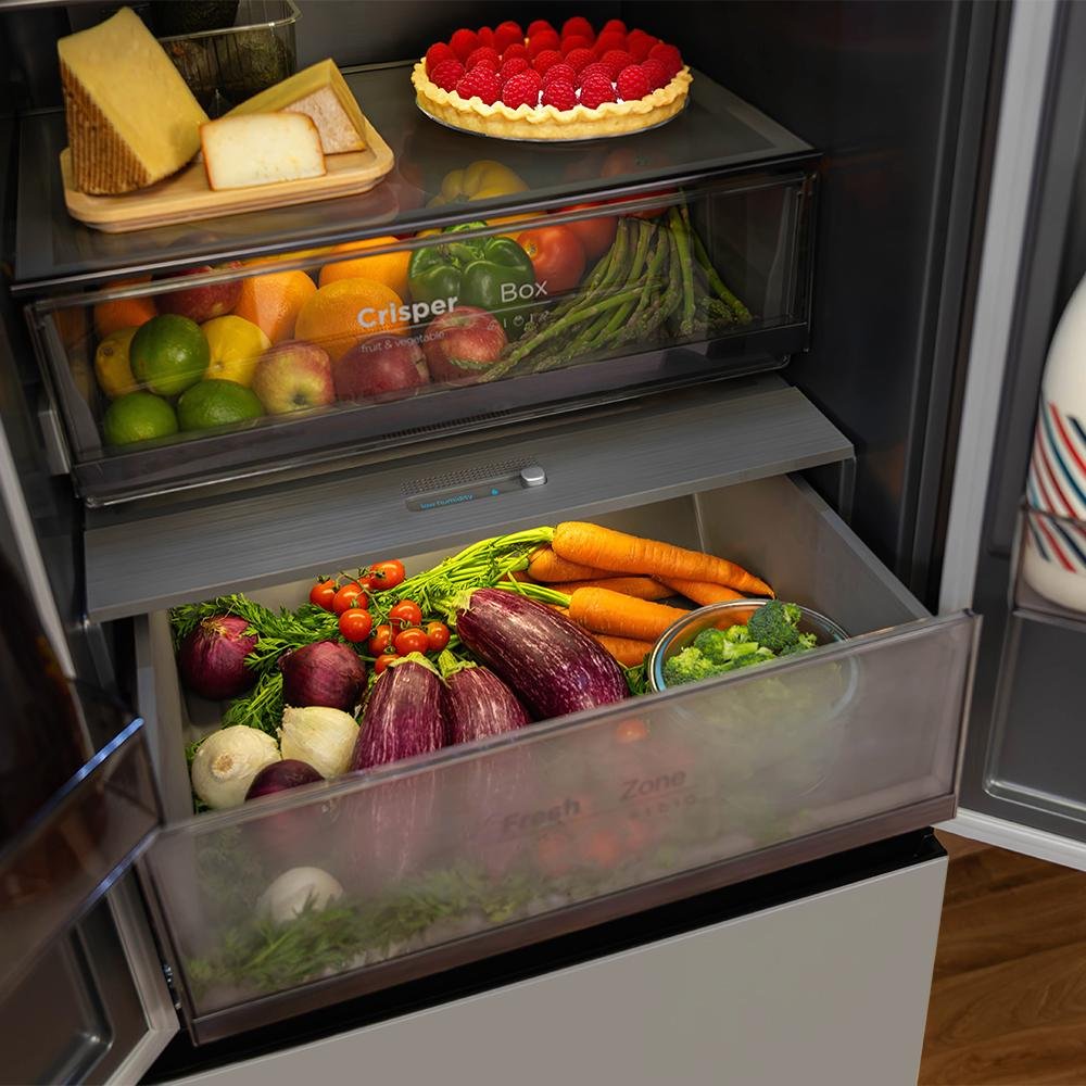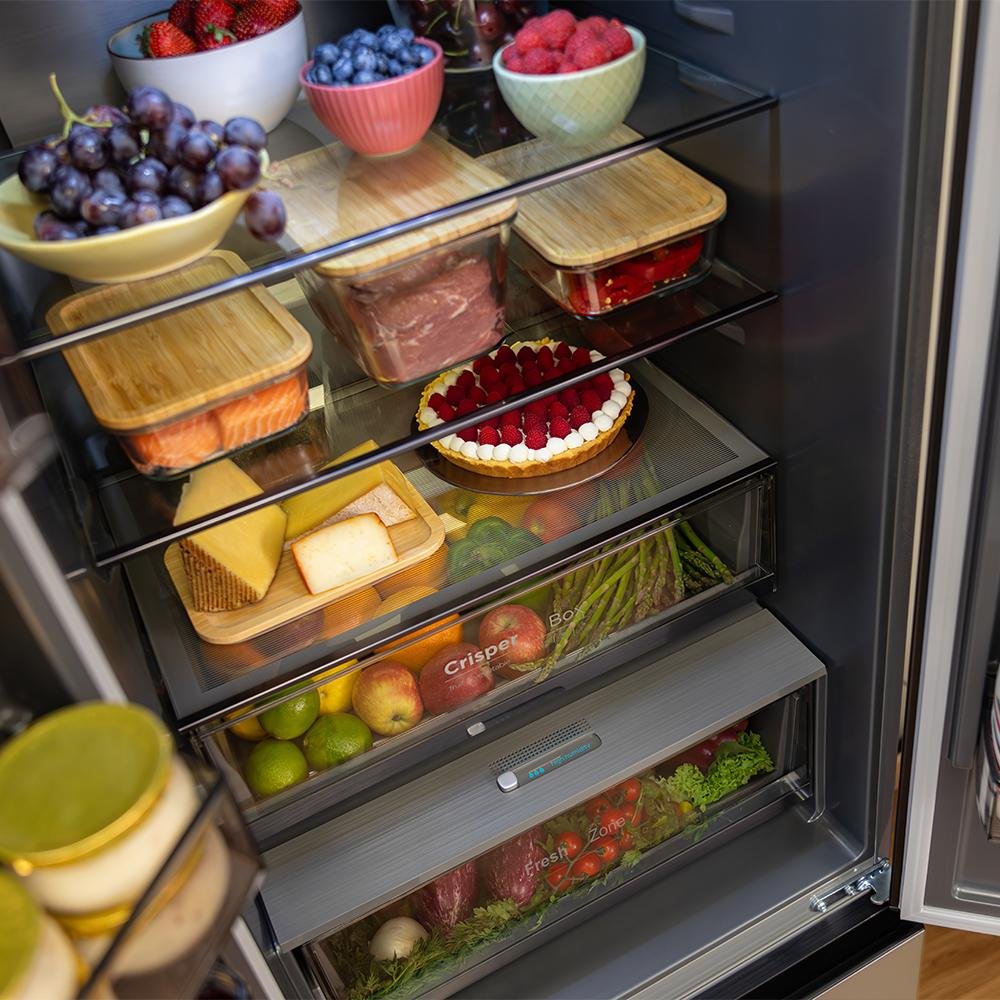 - Cajón convertible Fresh Zone: este cajón resulta especialmente útil, ya que podrás ajustar la temperatura para verduras (7ºC), frutas (4ºC) y carnes, pescados o bebidas frías (0ºC).