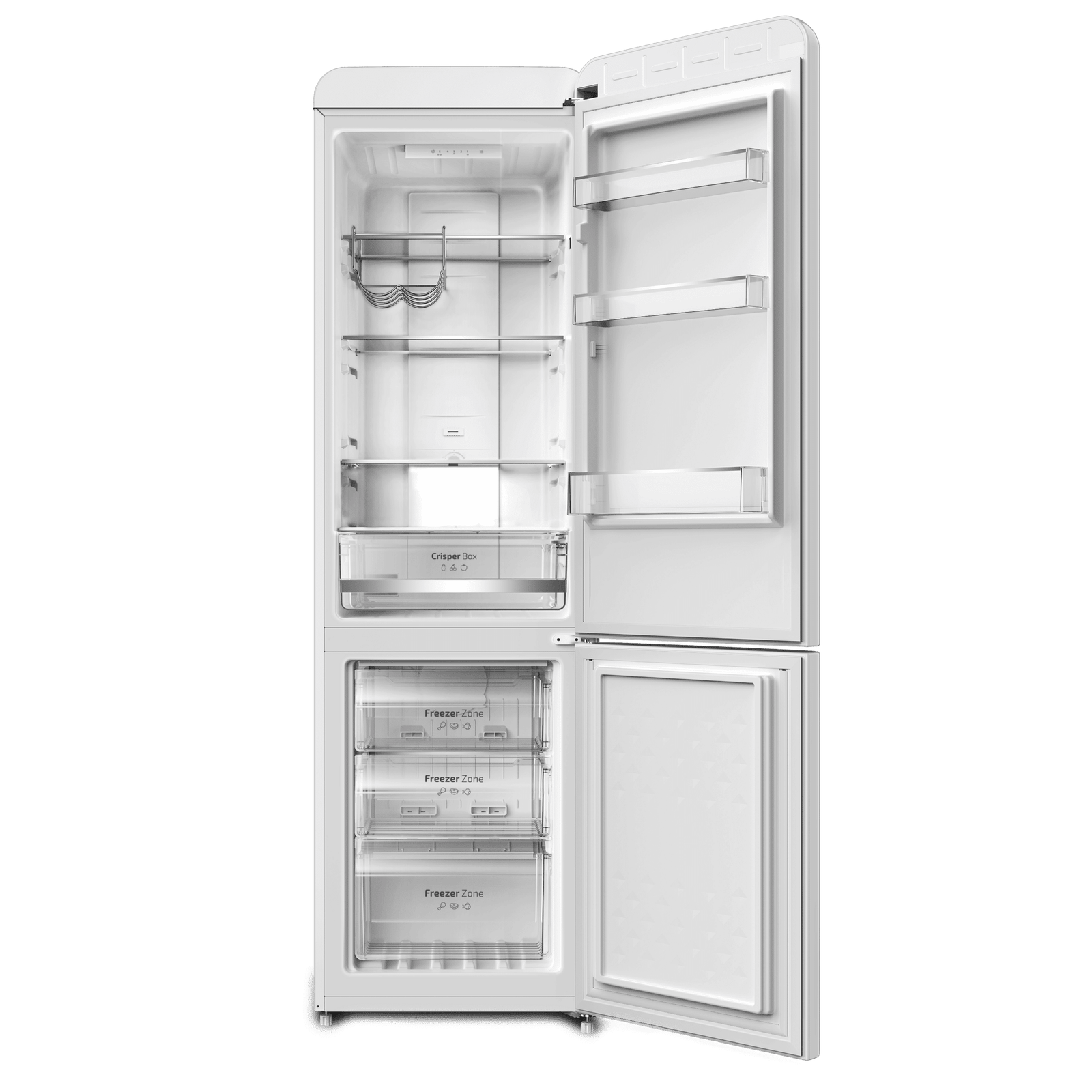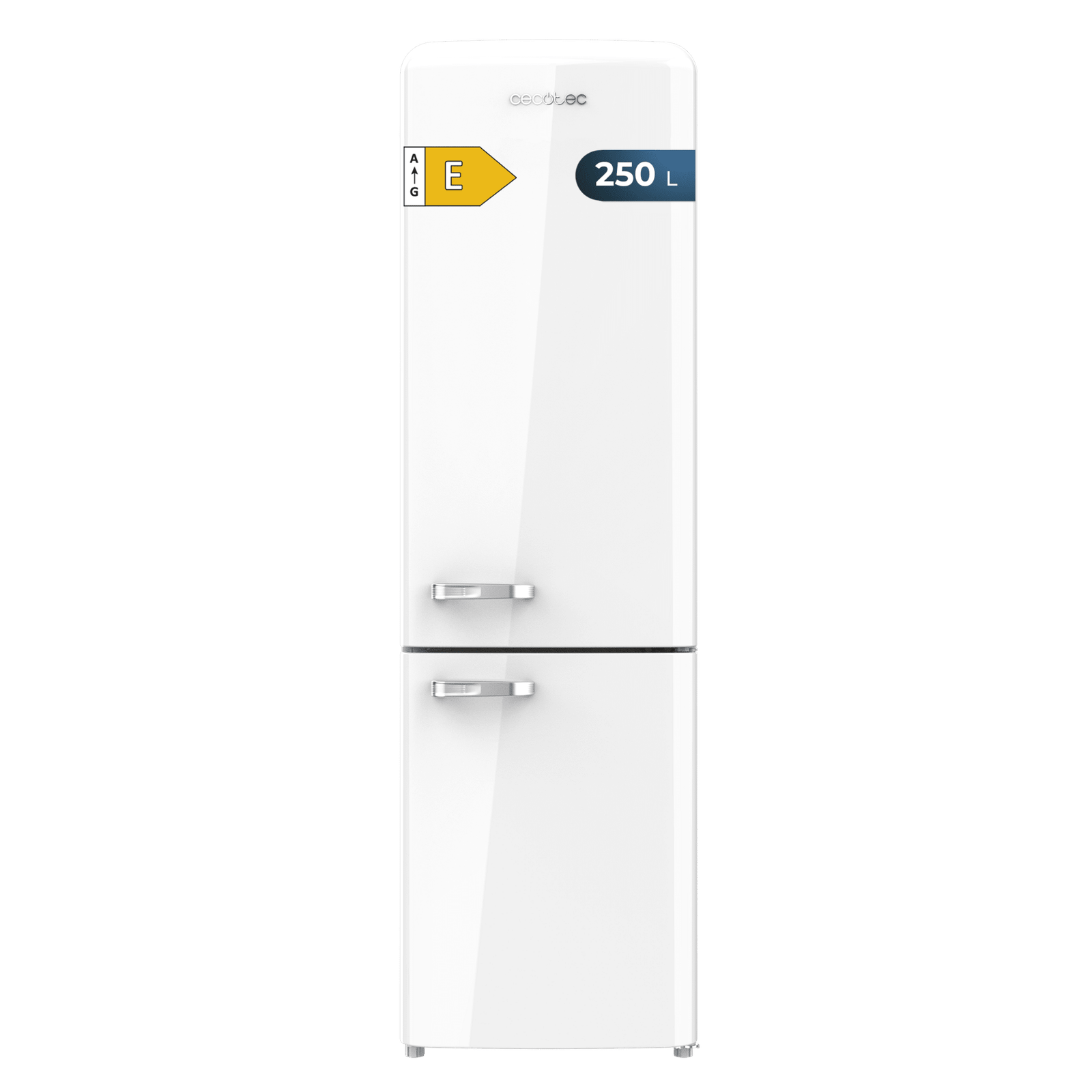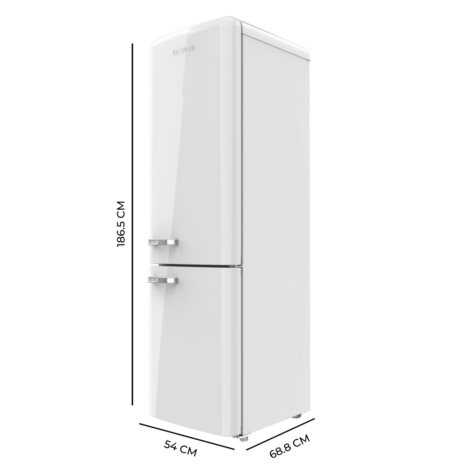 Bolero CoolMarket Combi Origin 250 NF White E Frigorífico combi retro, 186,5cm alto y 54cm ancho, capacidad 250L, Total No Frost y clase E y con sistema Multi Air Flow. Además, cuenta con el modo Fast Cooling.