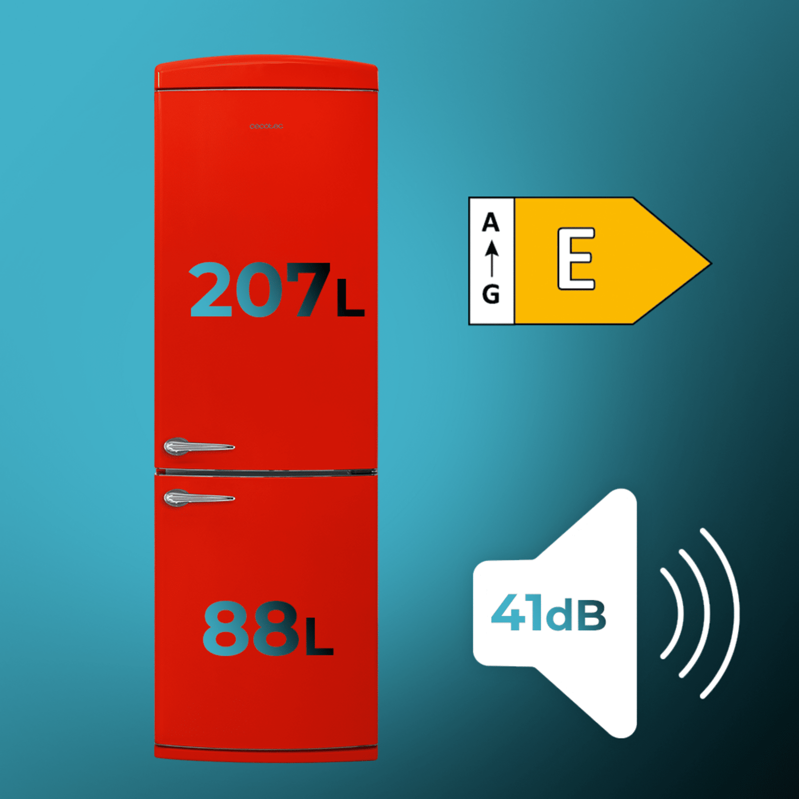 Bolero CoolMarket Combi Origin 294+ Red E Frigorífico retro combi rojo, 190cm de alto y 60 de ancho, capacidad 294L, Total No Frost, clase energética E, Multi Cooling, Ultra Fresh, Convertible Box, Multi Air Flow, Fast Freezing, Modo Eco, Botellero y Alarma en puerta..