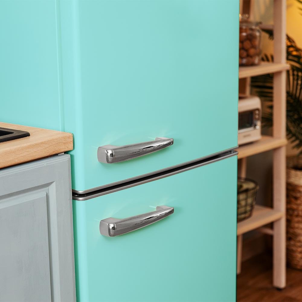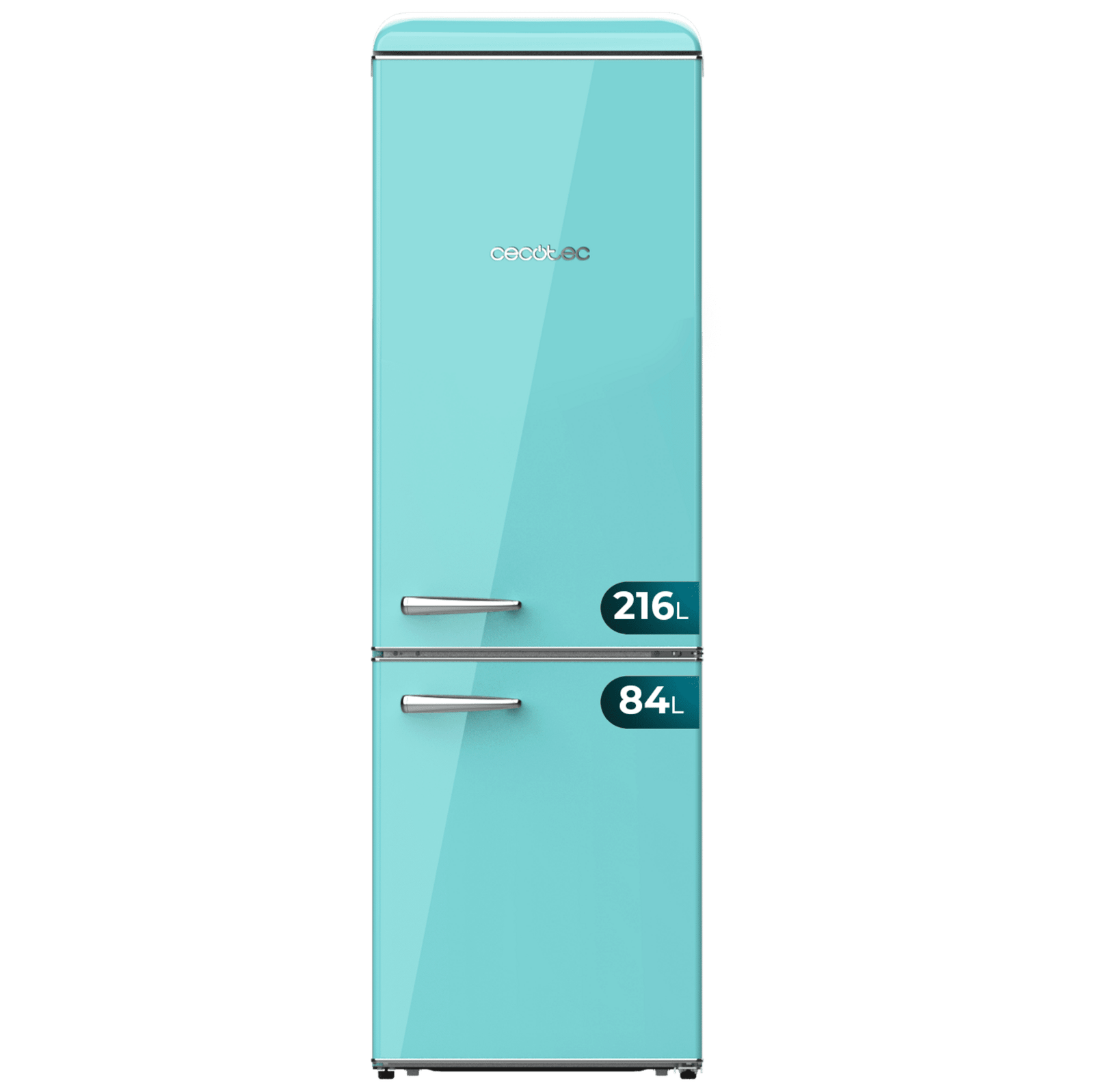 Bolero CoolMarket Combi Origin 300 Green E Frigorífico retro con capacidad de 300L, clase E, Luz interior, Crisper Box, control de temperatura, tirador cromado y bandejas de cristal.