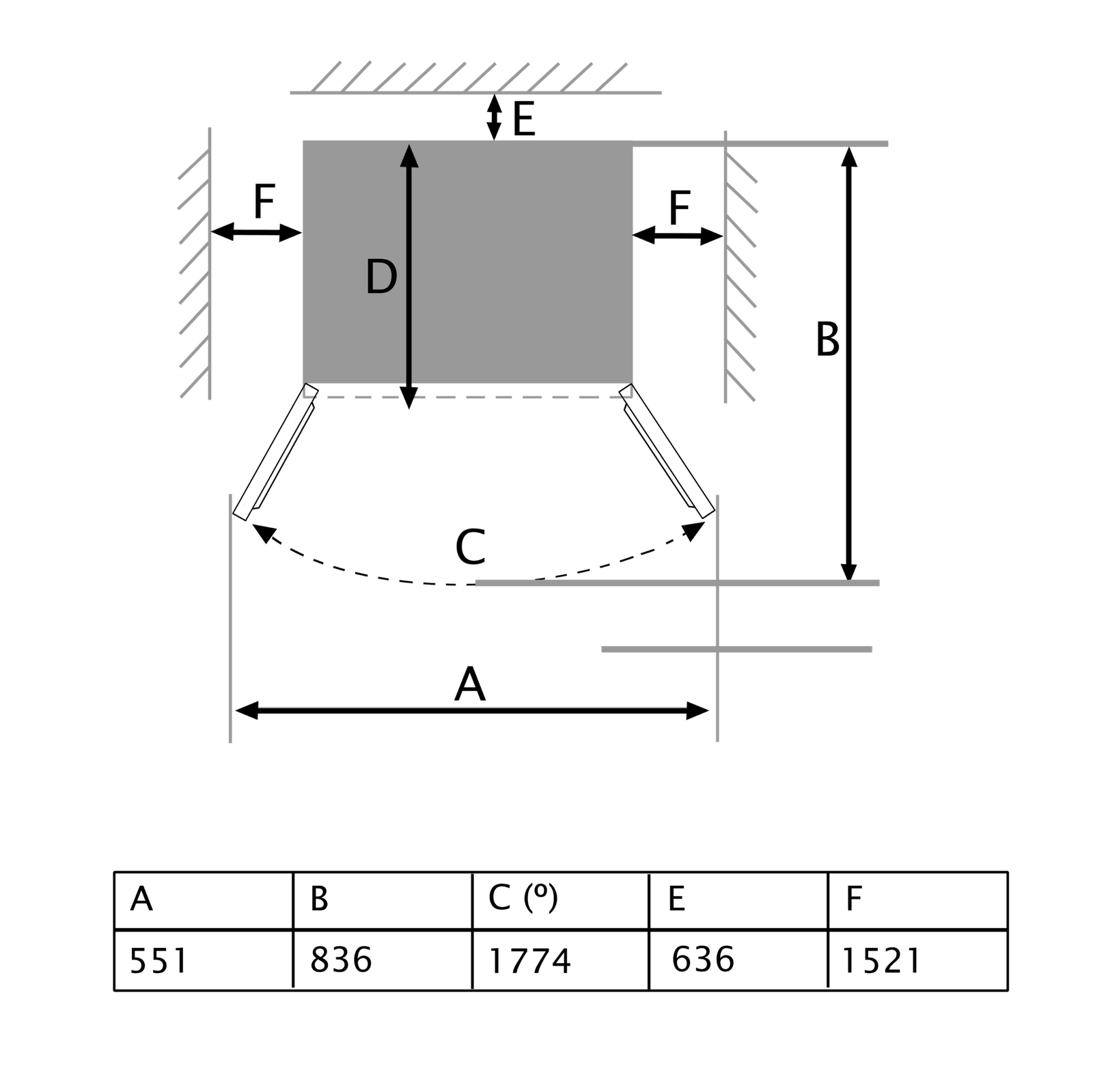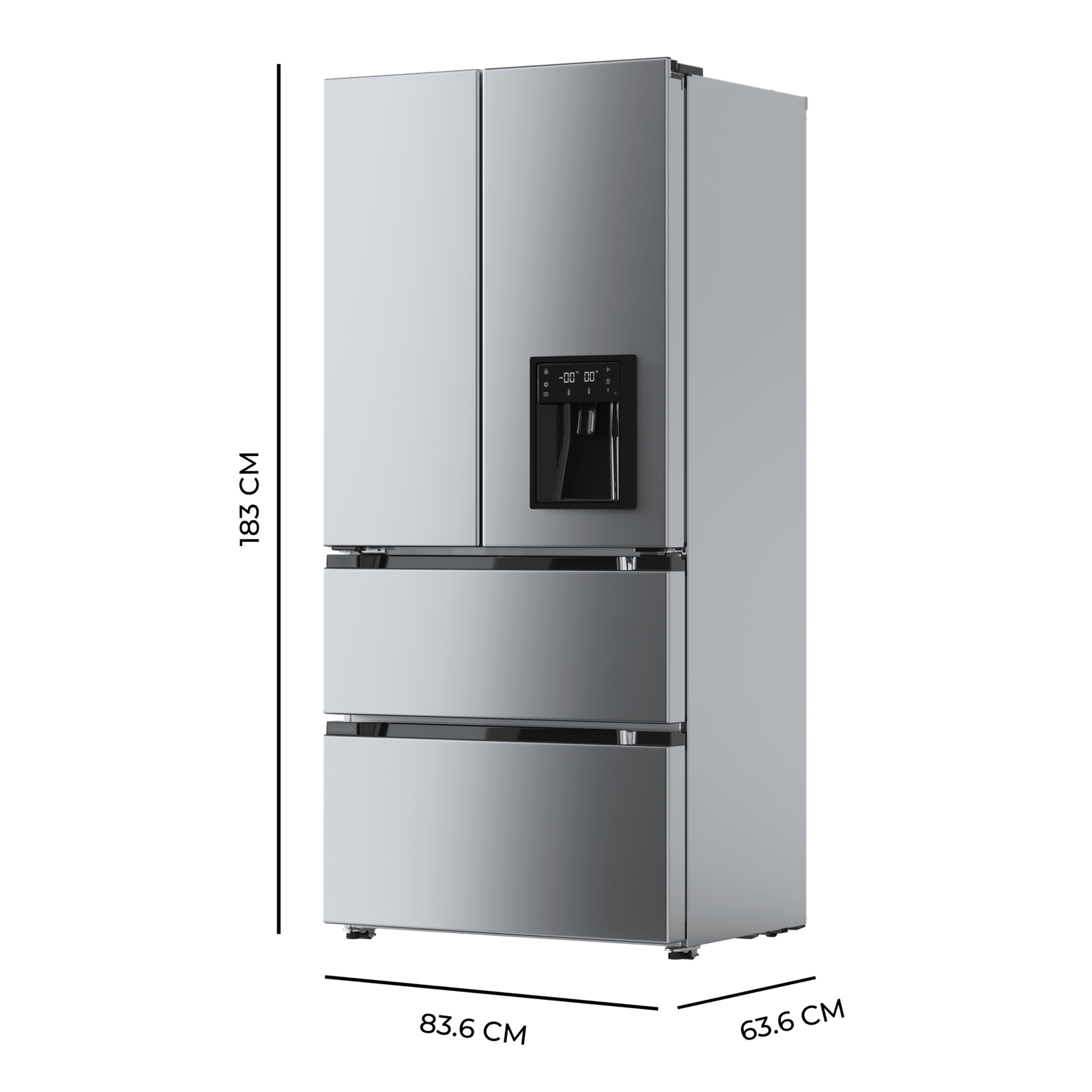 - Medidas frigorífico (ancho x fondo x alto): 83,6 x 63,6 x 183 cm.