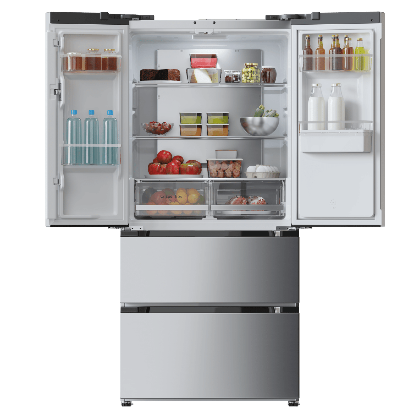 Nuestro frigorífico French Door dispone de dos puertas verticales y otras dos horizontales que te permitirán organizar eficientemente todos tus alimentos maximizando sus 436 litros de capacidad.