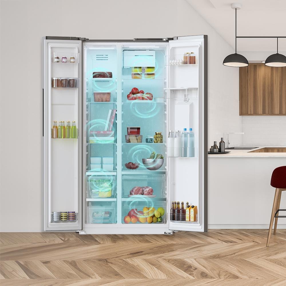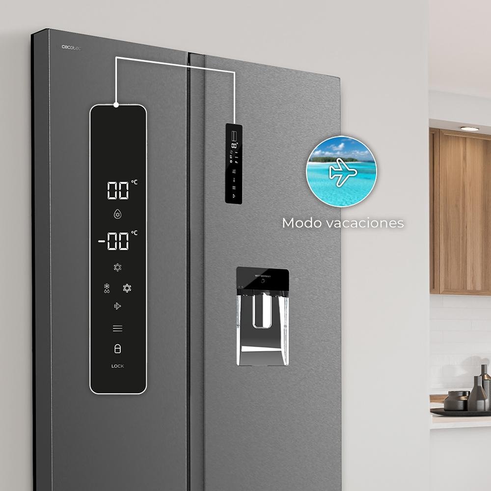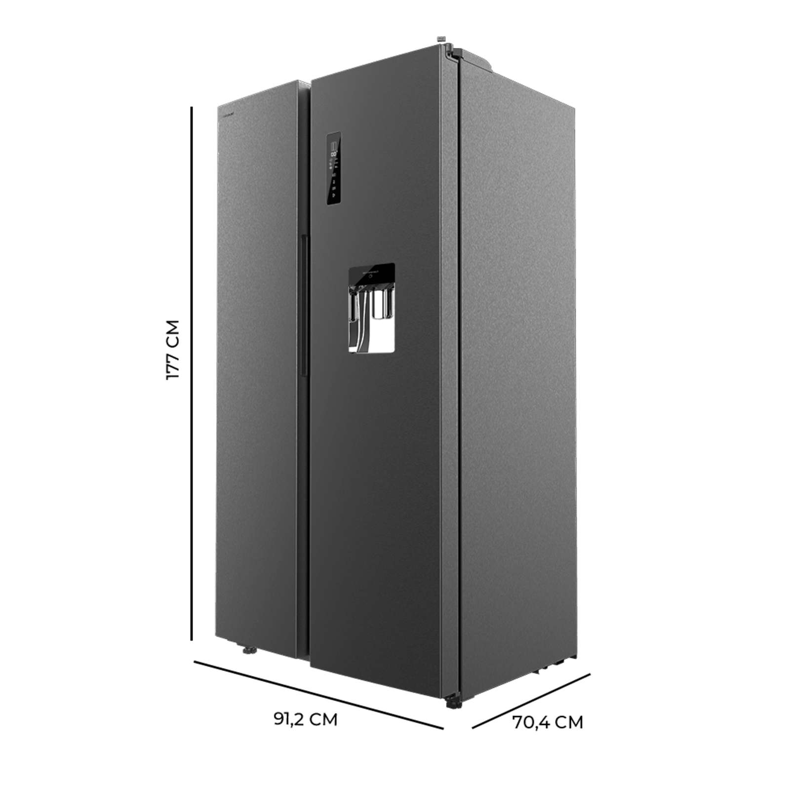 Bolero CoolMarket SBS 559 Dark D Frigorífico americano con 559 litros de capacidad, 177×91 cm, Clase D, NoFrost, Compresor Inverter, Dispensador de Agua con depósito, Display en puerta, Fast Freezing, Modo Smart, MultiAirFlow