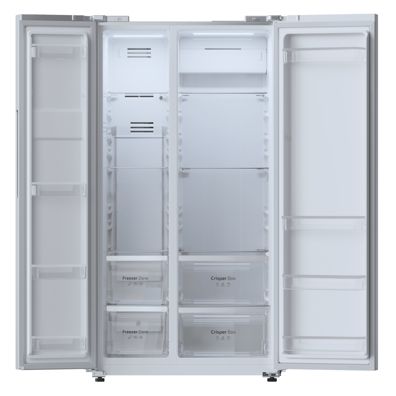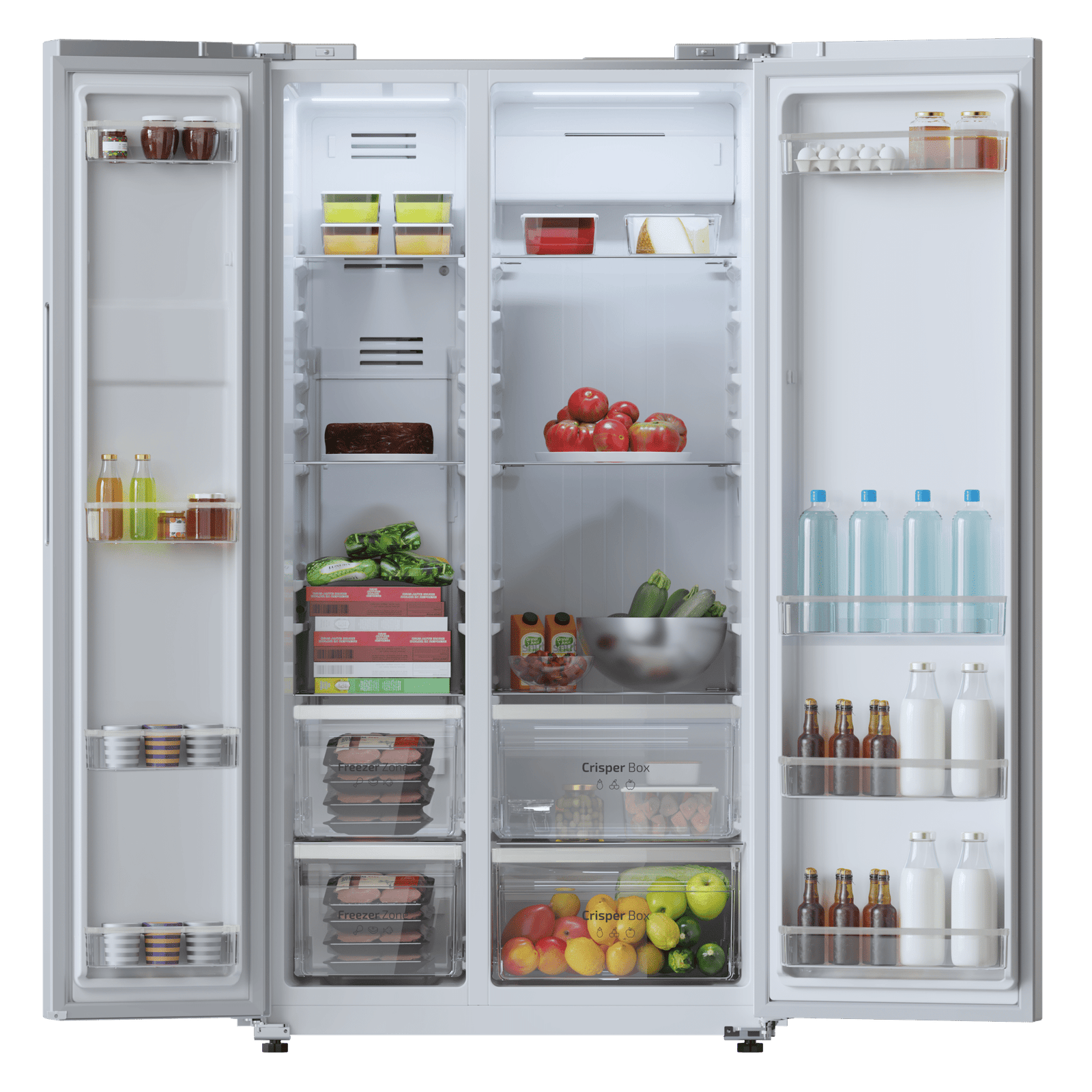 Bolero CoolMarket SBS 562 Inox D viene a cambiar la forma de conservar tus alimentos y bebidas. Cuenta con dos puertas verticales (una para el frigorífico y otra para el congelador) que se abren completamente, maximizando sus 562 L de espacio y facilitándote el almacenamiento y la organización.