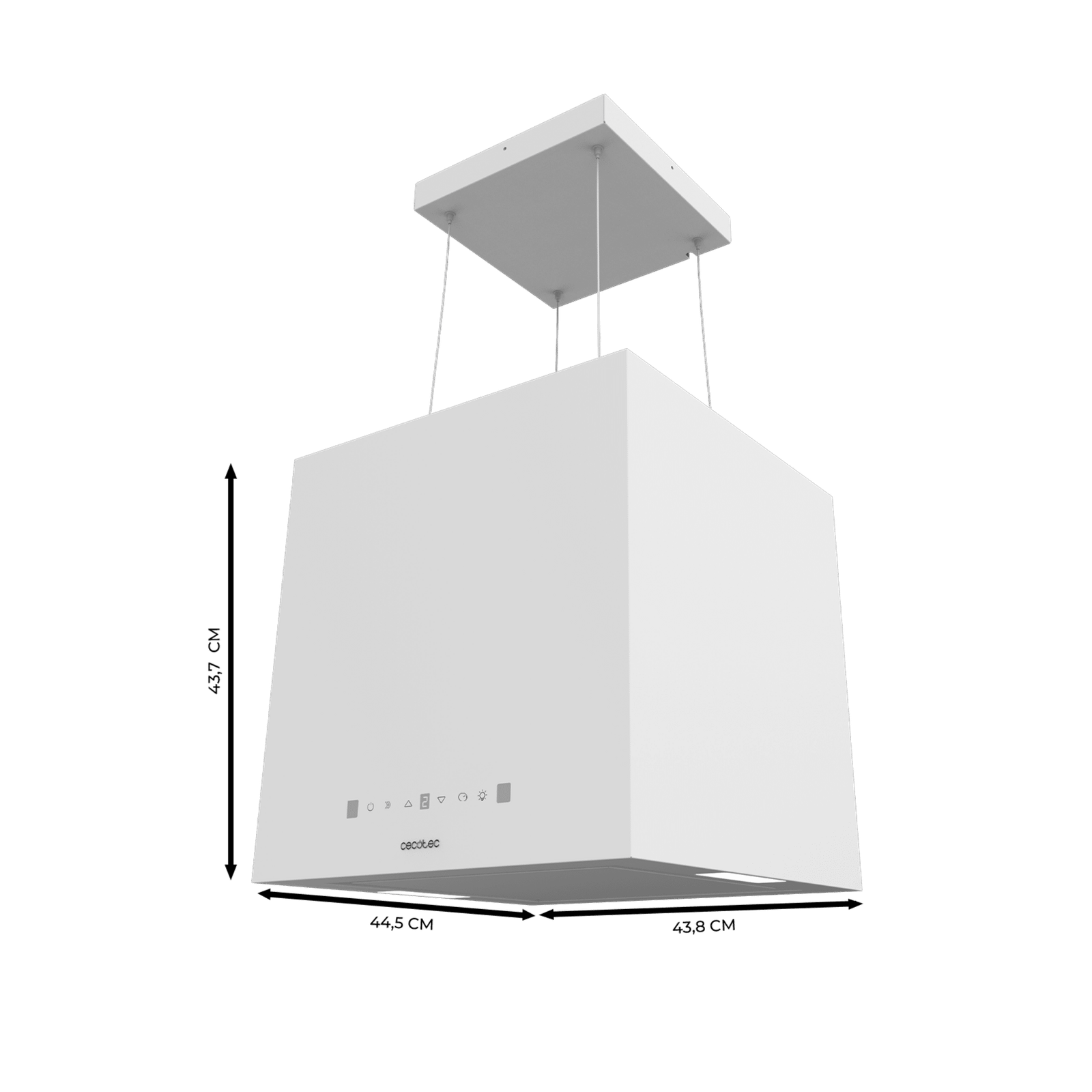 • Campana extractora colgante cuadrada de 44cm de ancho.
