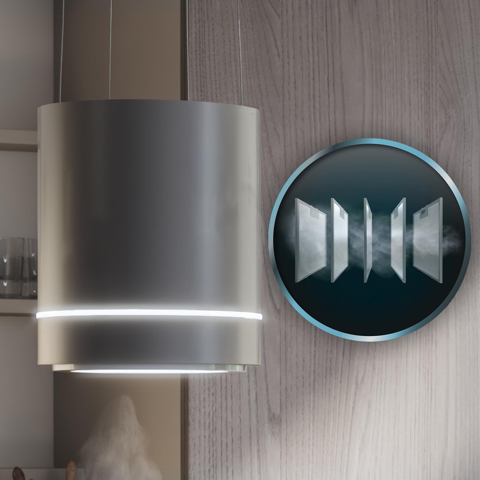 - Campana extractora colgante redonda de 38cm de diámetro.