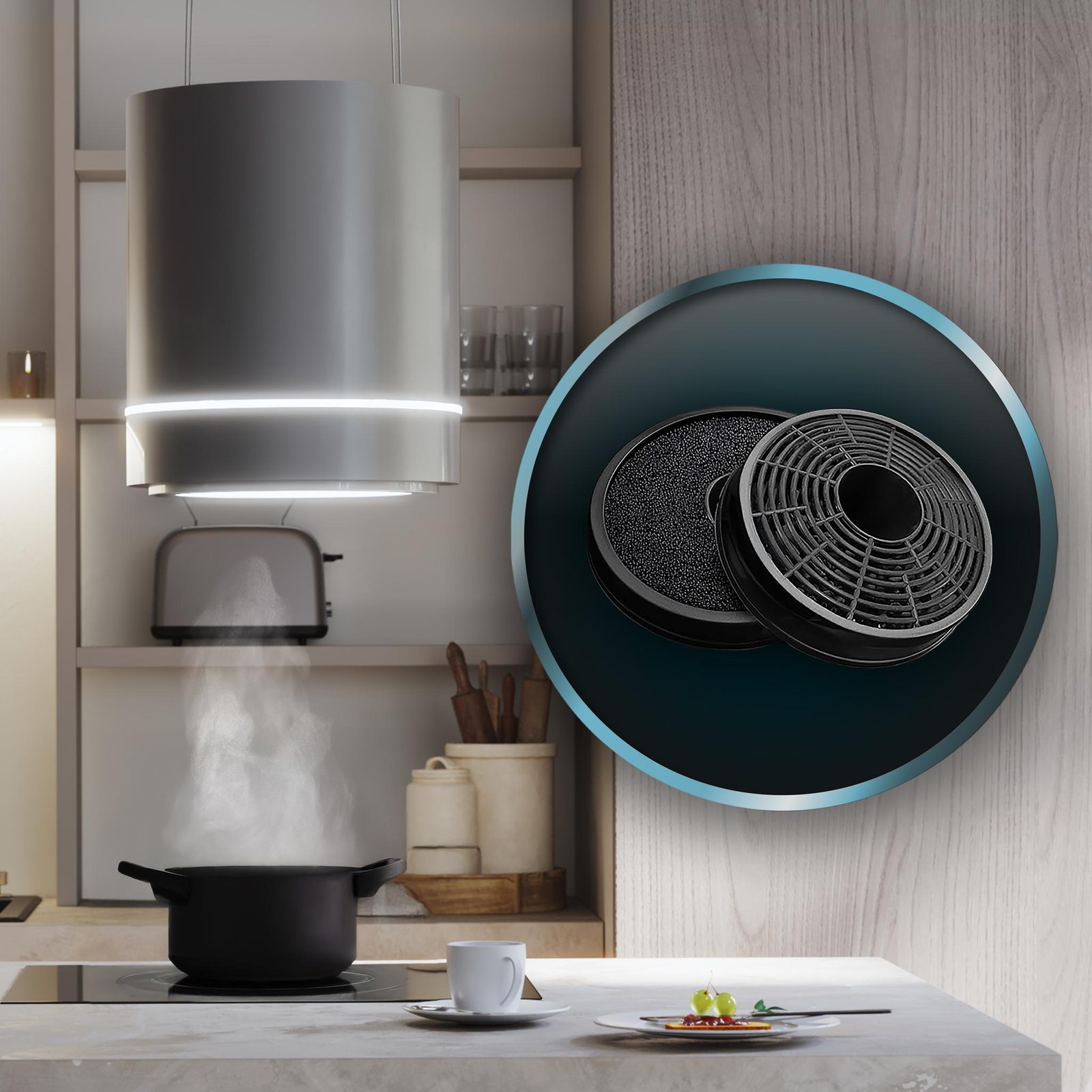 Gracias a sus dos filtros de carbono de Ø176, esta campana elimina eficazmente los malos olores y el humo, manteniendo tu cocina siempre fresca.