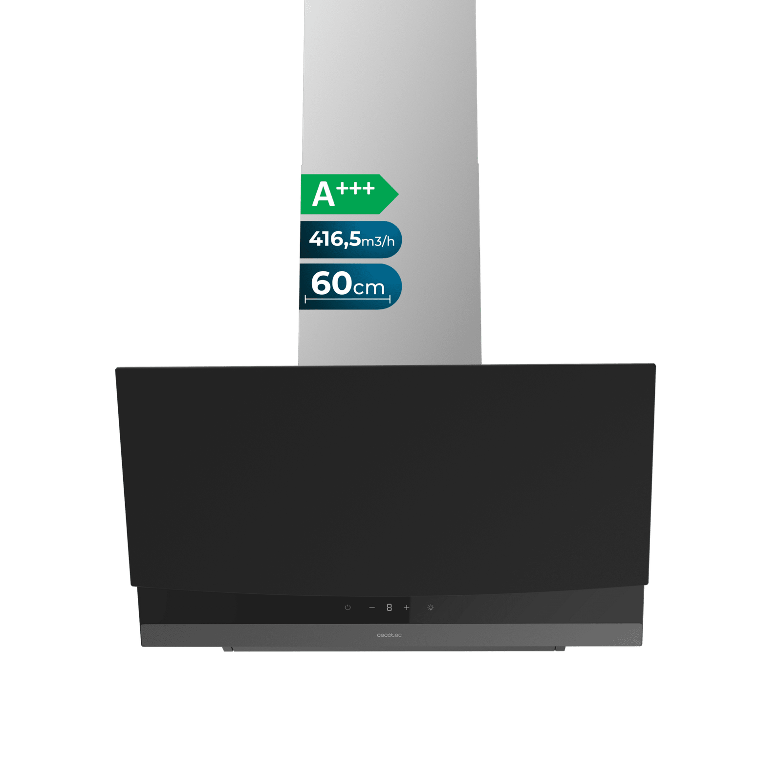 Bolero Flux DT 604400 Matt Black A+++ Cecotec Campana Extractora Decorativa Bolero Flux DT 604400 Matt Black A+++ de 60cm en Cristal Mate y Brillante, Chimenea Inox, con 416,5m³/h de succión, Clase A+++, Motor BLDC, Control Táctil Invisible, Hand Movement Control, 3 Velocidades, Función Booster, Luz LED, Filtros de aluminio, Opción de filtros de carbono incluídos.