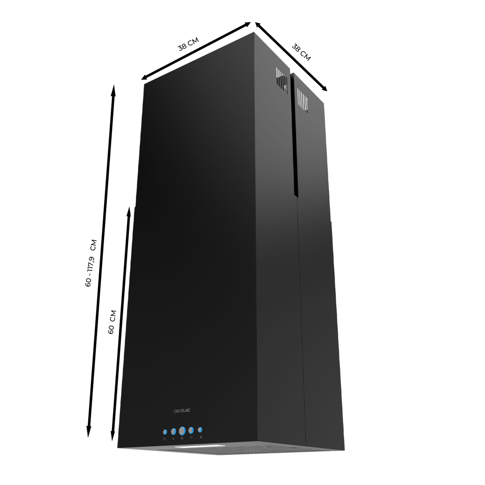 - Campana extractora isla cuadrada de 38cm de ancho.