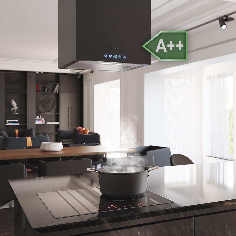 La campana de isla cuenta con un ancho de 38 cm y acabado en color negro para darle un toque diferencial a tu cocina. Pero no todo es diseño, su clase energética A++ te permitirá ahorrar en cada uso, todo ventajas.