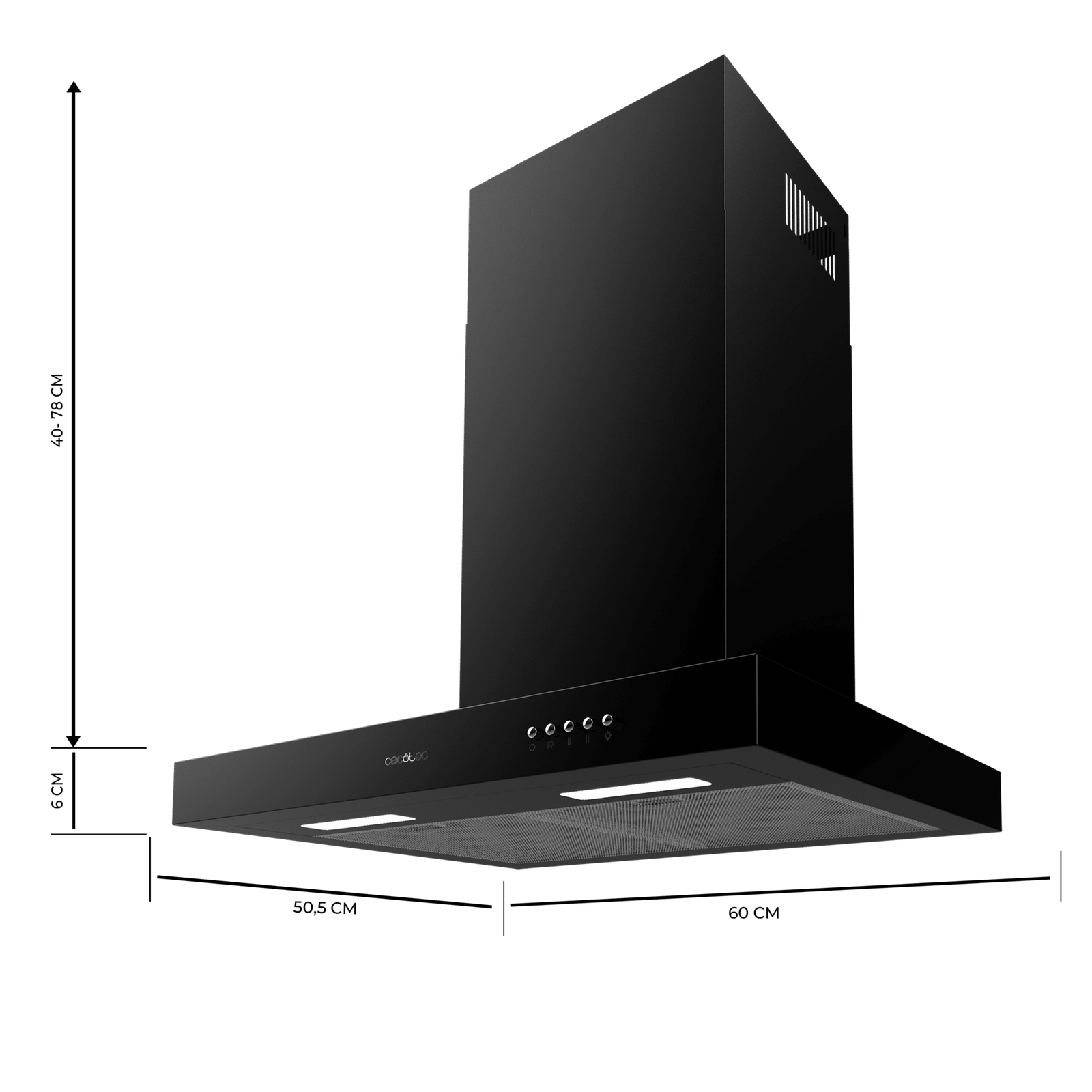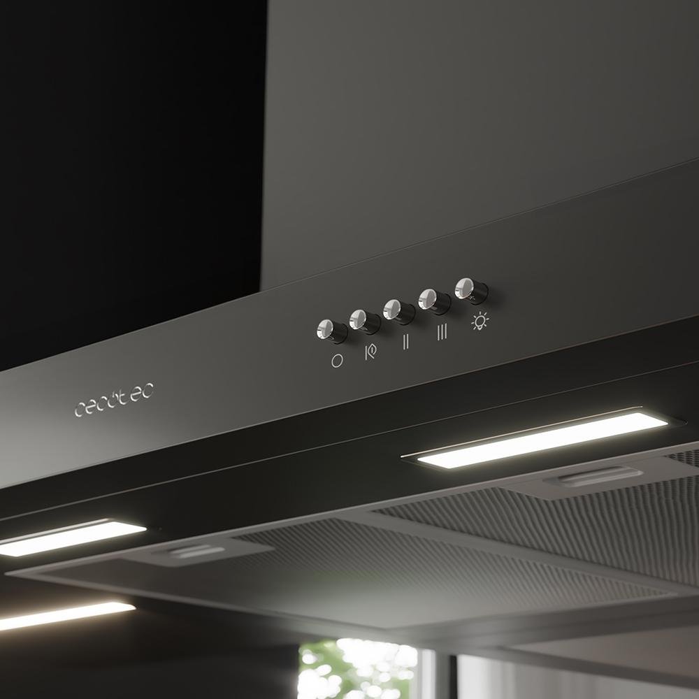 - Acabado en superficial negro: campana extractora con acabados superficiales en negro, para un diseño estilizado y elegante.