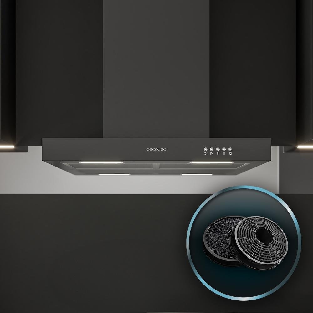 Incluye dos filtros de carbono Ø176, ideal para eliminar tanto los malos olores como el humo.