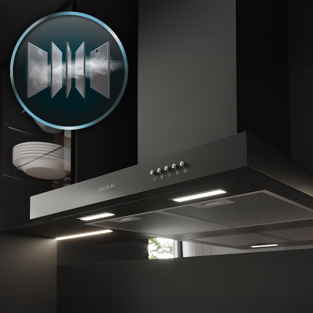 - Protégete de la grasa: la campana extractora contiene un filtro de grasa de aluminio de 5 capas.