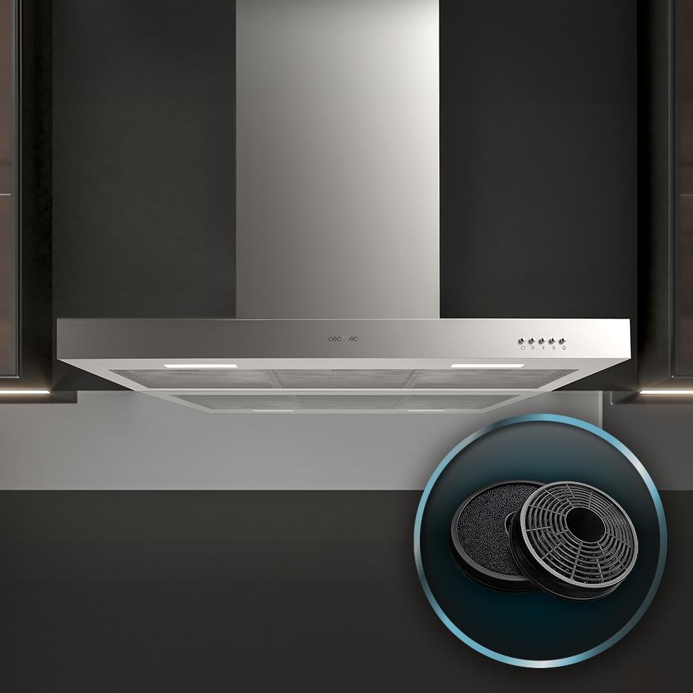 Incluye dos filtros de carbono Ø176, ideal para eliminar tanto los malos olores como el humo.