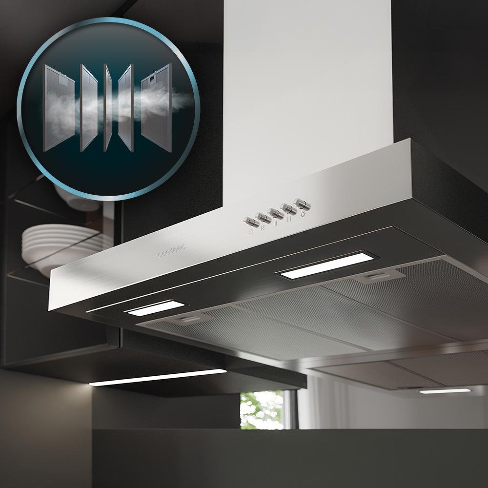 - Protégete de la grasa: la campana extractora contiene un filtro de grasa de aluminio de 5 capas.