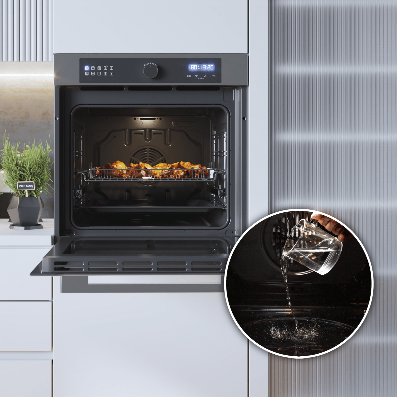 Esta función desincrusta la suciedad con vapor y permite limpiar sin rascar para que dejes el horno como nuevo sin esfuerzo y de una sola pasada ¡Fácil y sencillo!