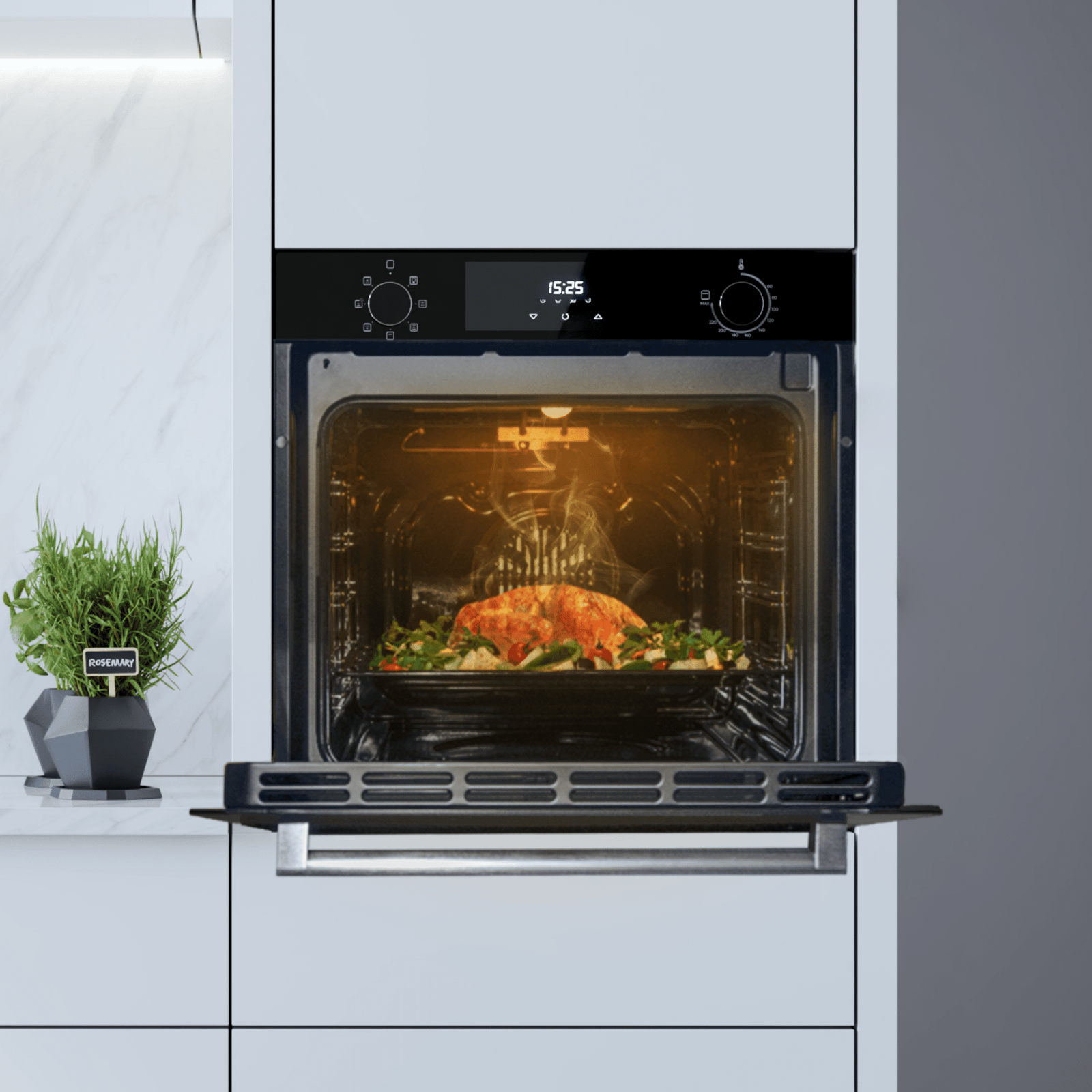 • Steam Assist: prepara tus platos con esta función, utilizando el horneado junto con el vapor para que tus recetas queden crujientes por fuera y jugosas por dentro.