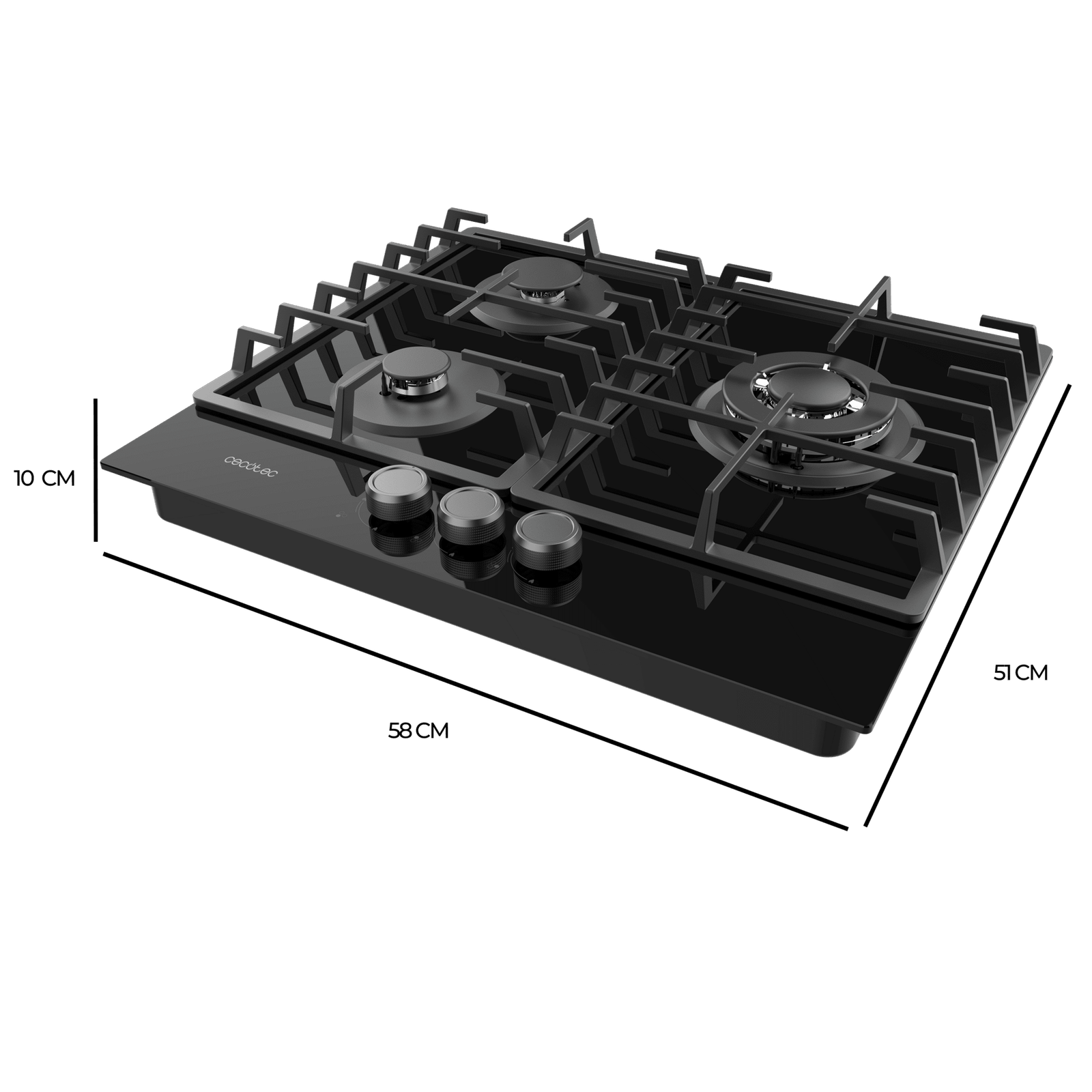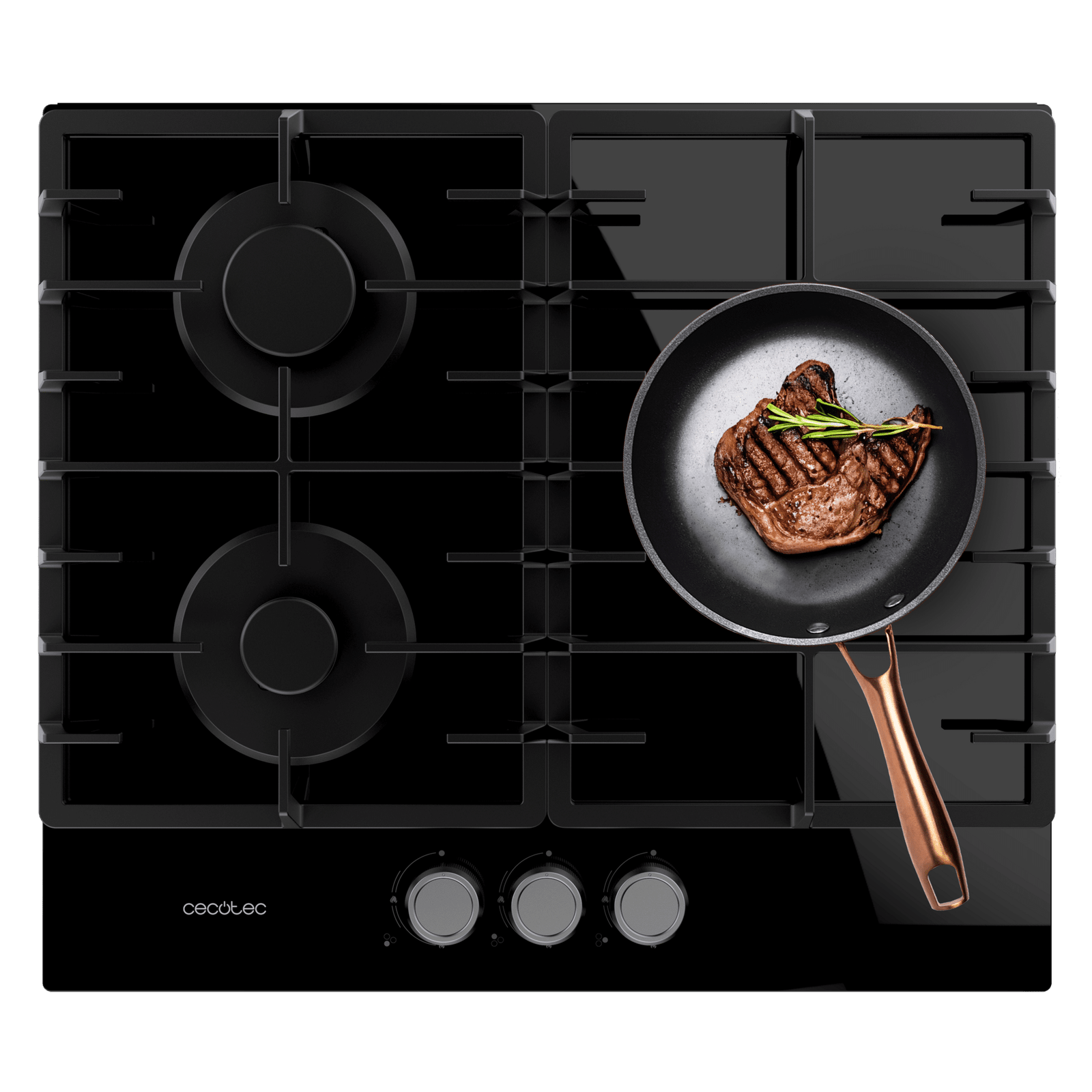 - 3 Fuegos, acabado en cristal negro con parrillas completas de hierro fundido. Los acabados de alta calidad hacen que el rendimiento y la durabilidad de estas parrillas resisten cualquier tipo de cocinado.