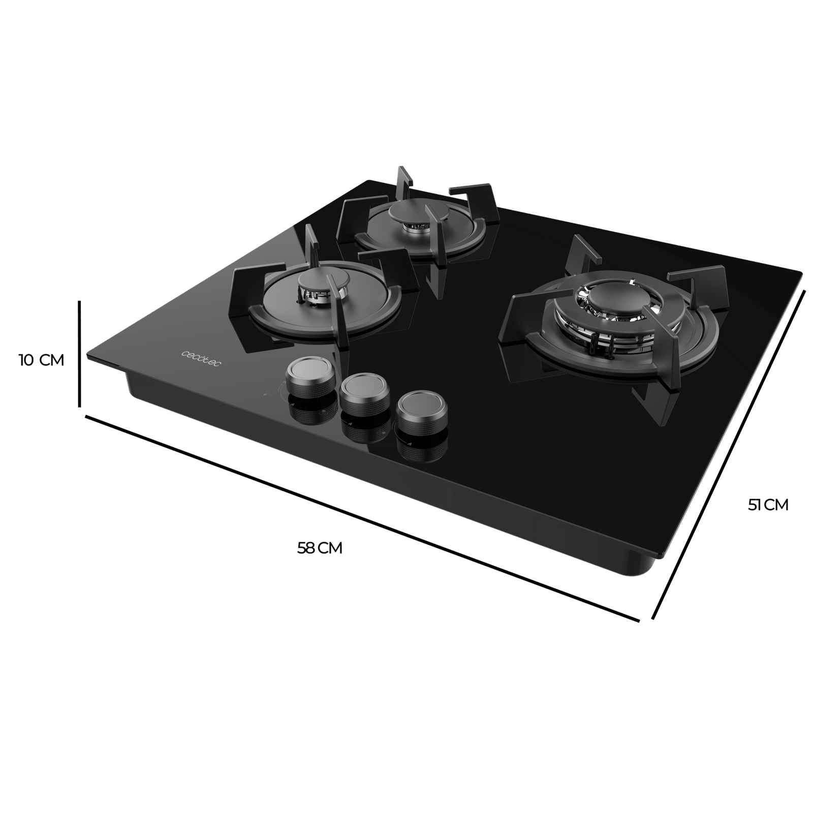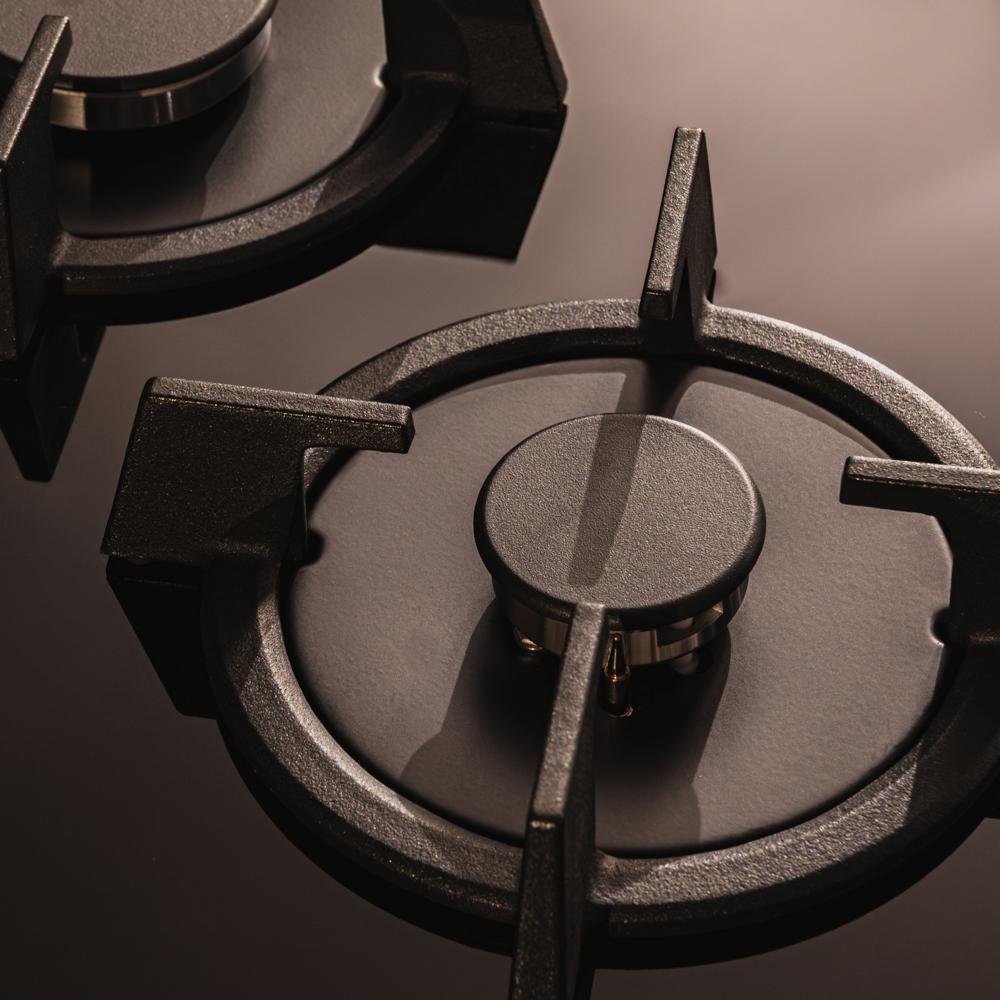 • 3 Fuegos, acabado en cristal negro con parrillas individuales circulares de hierro fundido. Los acabados de alta calidad hacen que el rendimiento y la durabilidad de estas parrillas resisten cualquier tipo de cocinado.