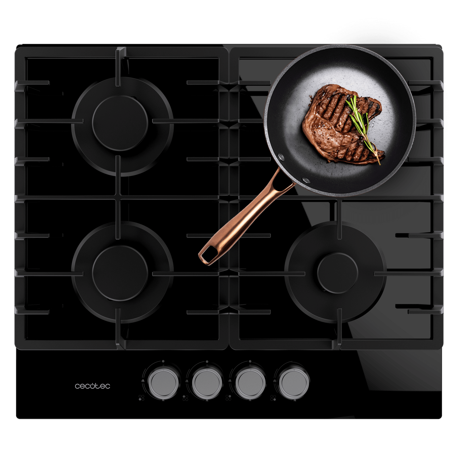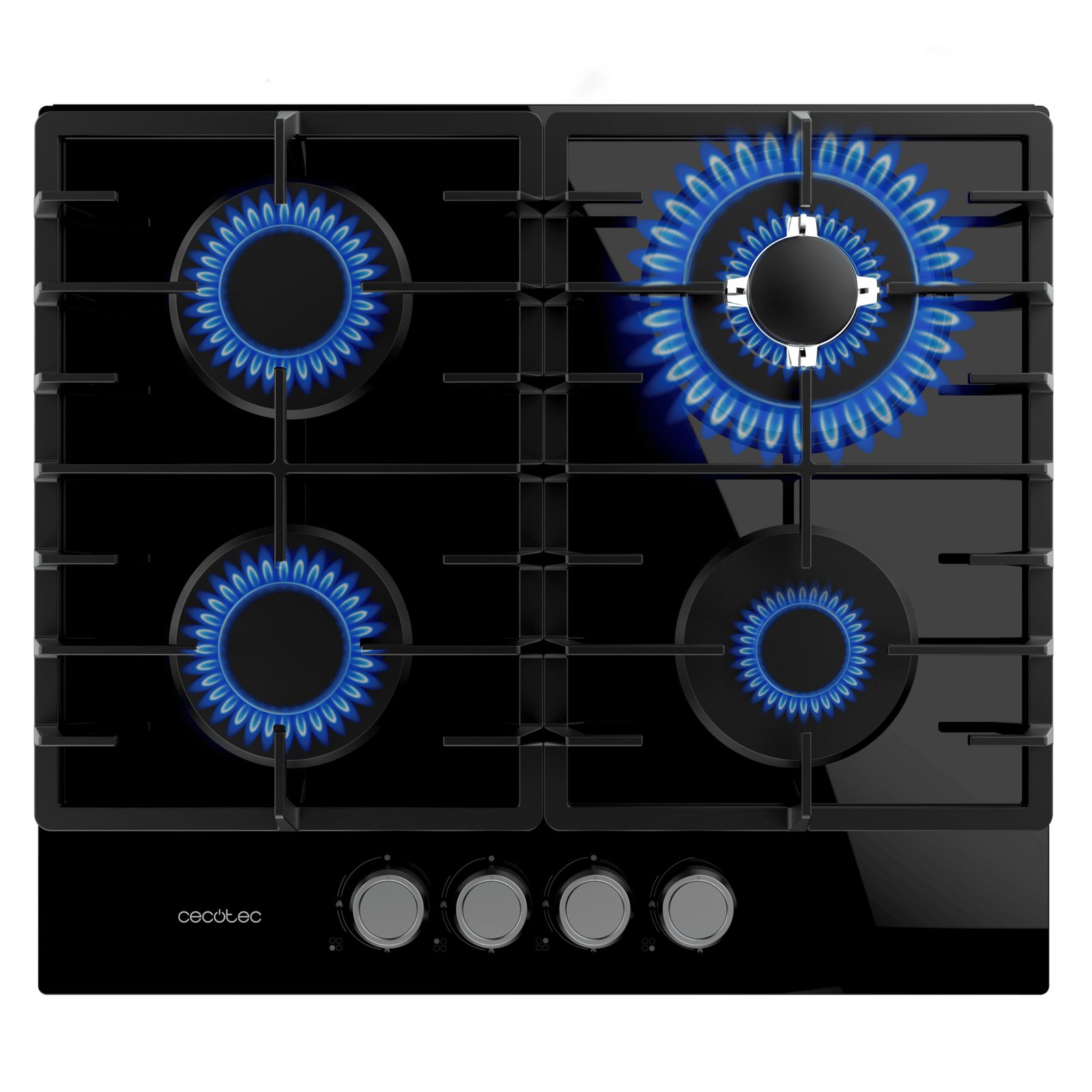 - 4 Fuegos, acabado en cristal negro con parrillas completas de hierro fundido. Los acabados de alta calidad hacen que el rendimiento y la durabilidad de estas parrillas resisten cualquier tipo de cocinado.
