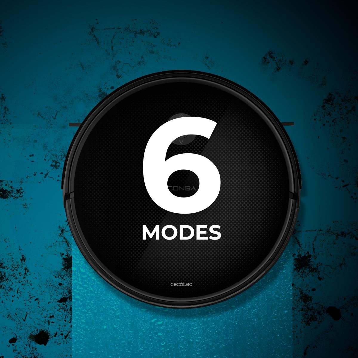 - 6 modos de limpieza: auto, aleatorio, fregado, espiral, bordes y manual para adaptar tu limpieza a tus necesidades.