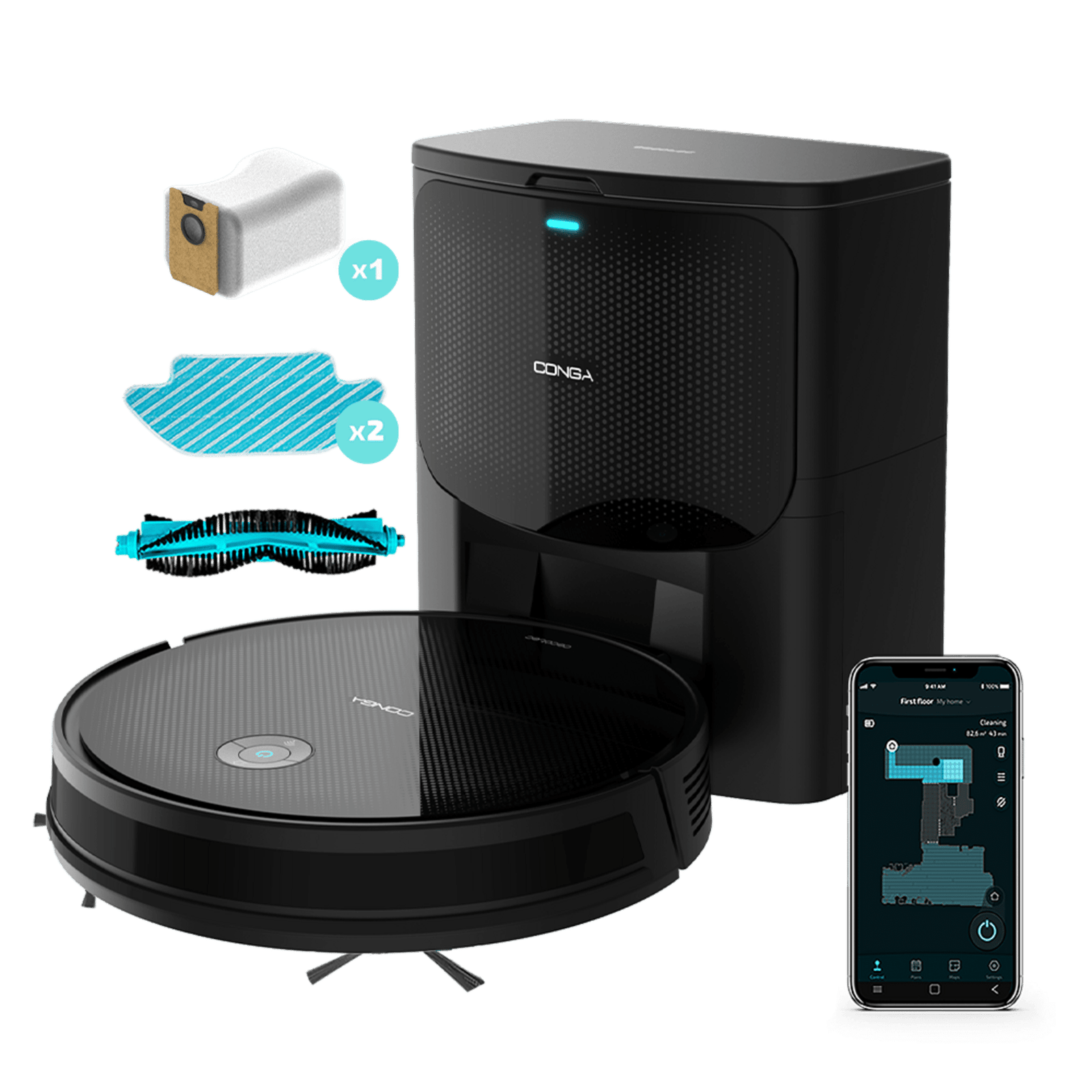 No te preocupes por la limpieza ni por tu Conga, con la base de autovaciado se carga y se vacía sin que tengas que hacer nada gracias a su tecnología Base-SmartClean. *El tiempo entre vaciados dependerá de las condiciones ambientales y hábitos de uso.