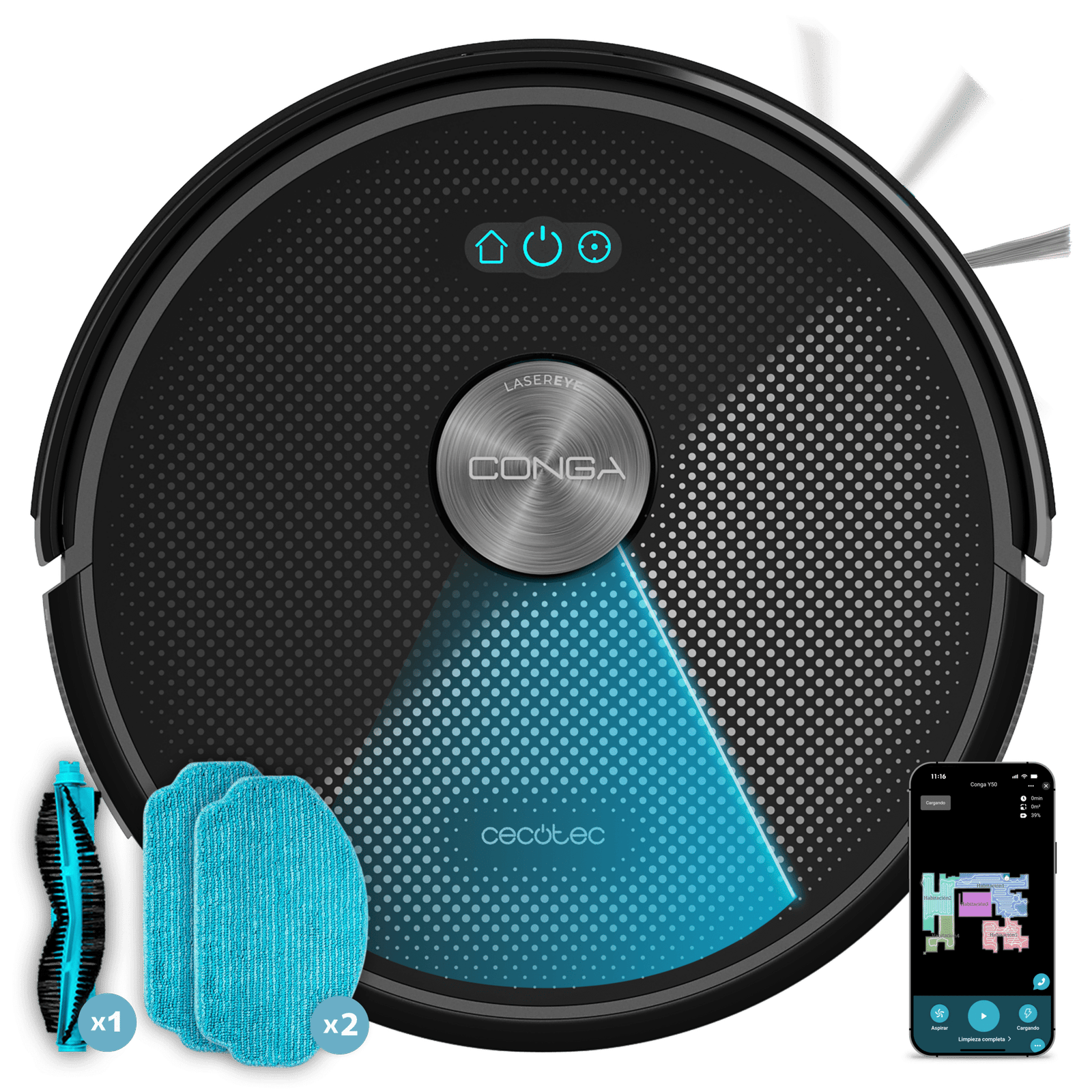 Conga M50 X-Treme Robot aspirador con Navegación láser. 5000 Pa de presión de succión, 160 m2 de autonomía. Cepillo multifunción para todas las superficies.