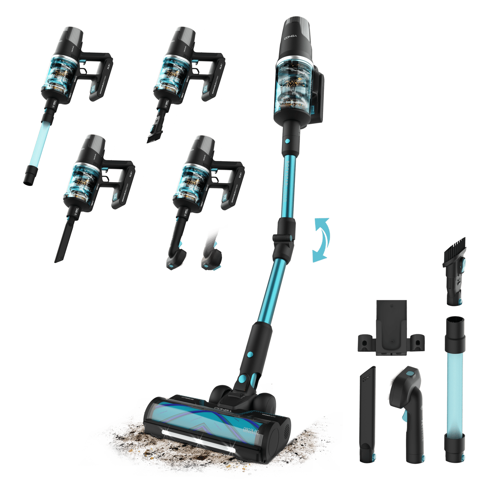 Conga Rockstar 9500 Lunar Pet Flex Mood Aspirador escoba sin cable con Máxima potencia de succión de 300 AW y ultrapotencia de 780 W. 90 minutos de autonomía. Cepillo HairLess antienredos. Tubo flexible y kit de accesorios completo. Incluye cepillo para animales.