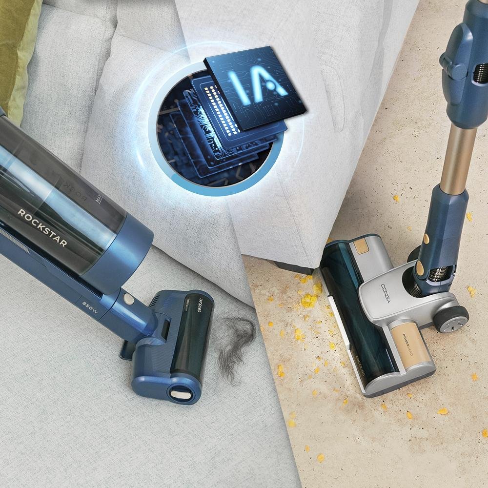 • Potencia automática según tus movimientos, nivel de suciedad y tipo de superficie. Inteligencia Artificial: gestión precisa de la potencia para cada situación de limpieza, que optimiza el consumo de la batería para limpiar en profundidad de forma eficiente.