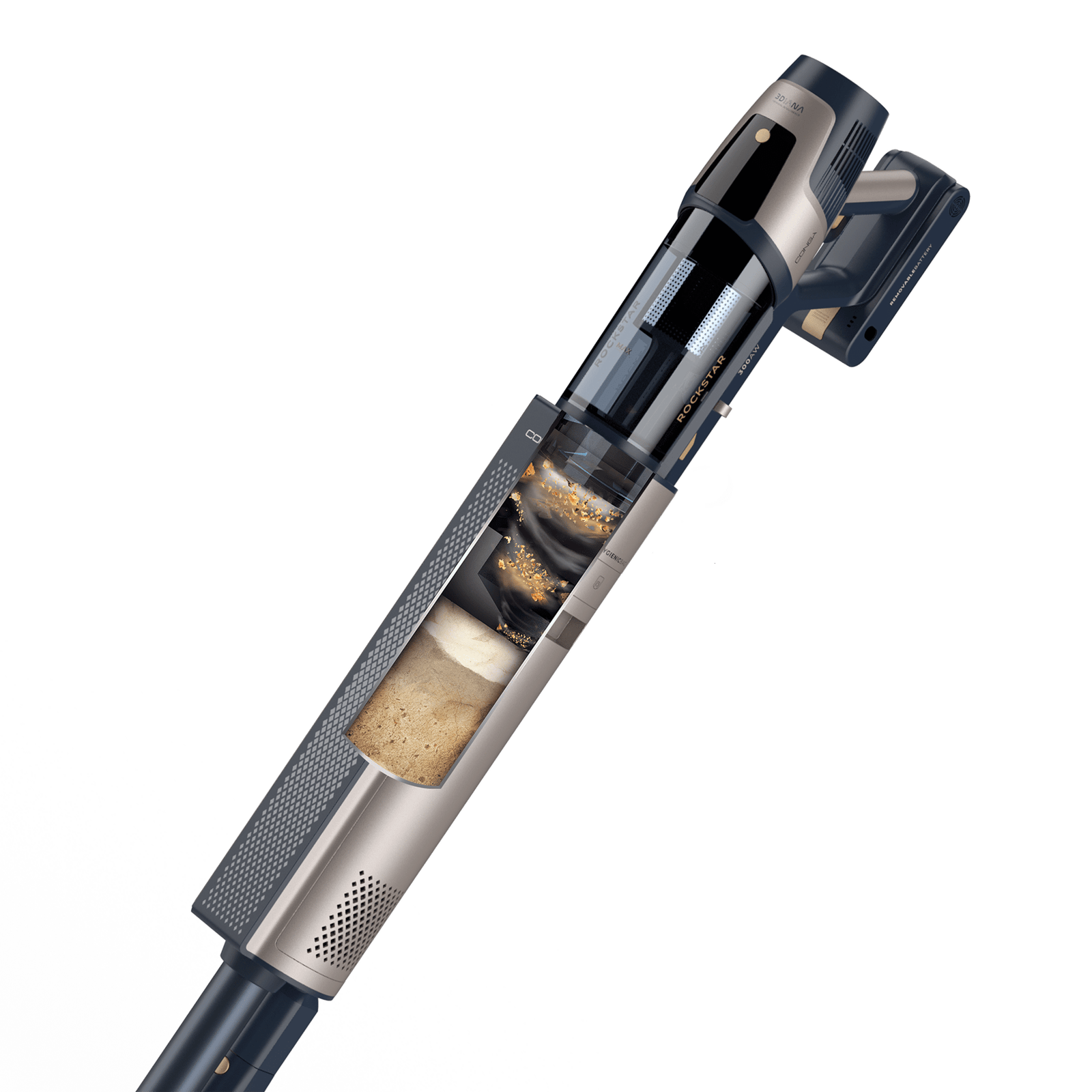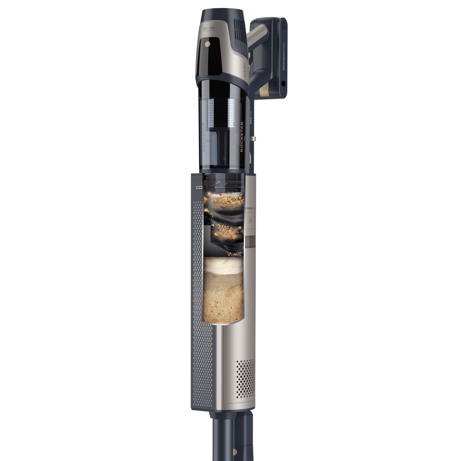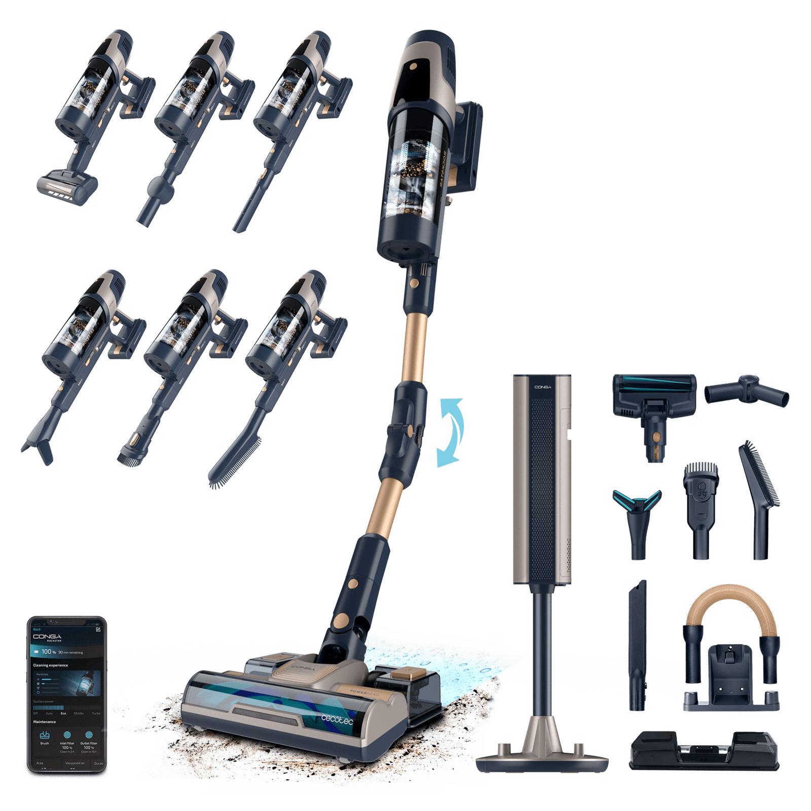 Conga Rockstar RZ90 AI AquaPet Flex Connected X-Treme Aspirador vertical con base de autovaciado. 310 AW y 850 W. Tubo flexible. Inteligencia Artificial y contador de partículas. APP. Cepillo de animales y accesorio WaterTank de fregado.