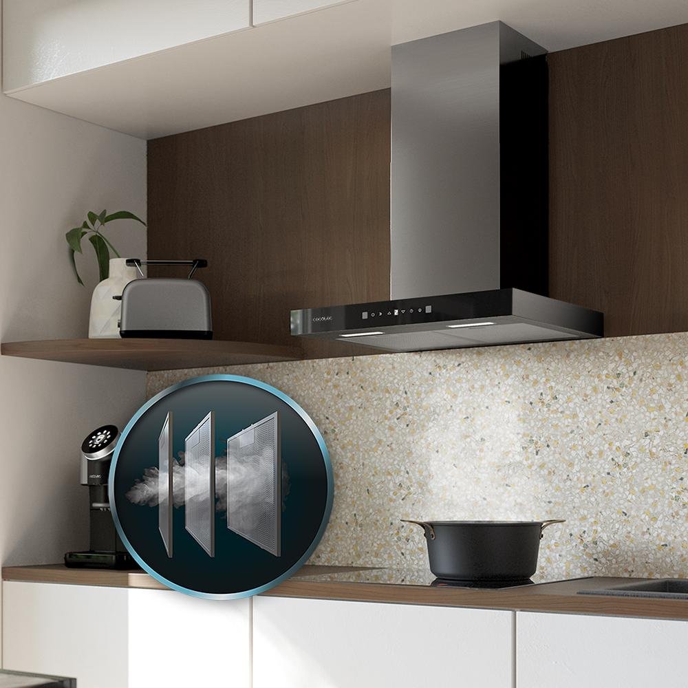 Deja de preocuparte por la grasa. Con su filtro específico de aluminio de 5 capas tu cocina quedará siempre limpia y lista para cocinar.