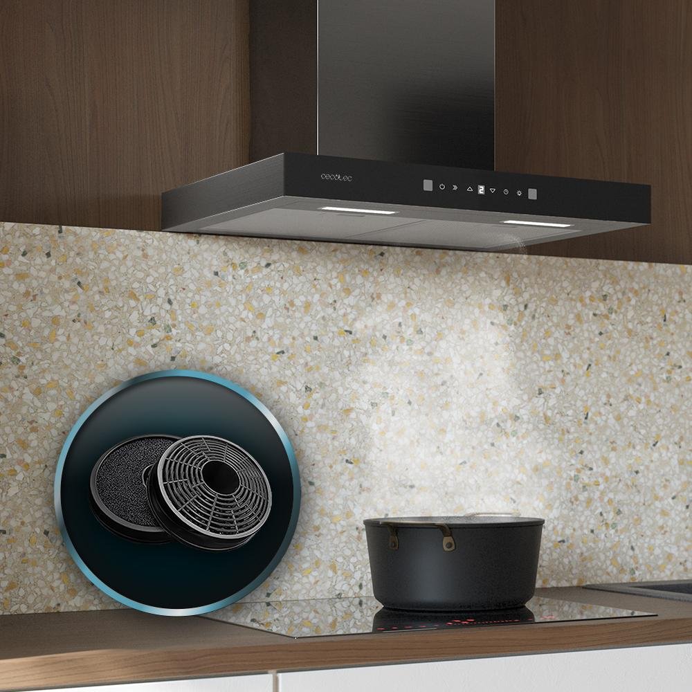 Sus dos filtros de carbono de Ø176 son ideales para complementar el potente motor de la campana, eliminando por completo los malos olores y el humo.