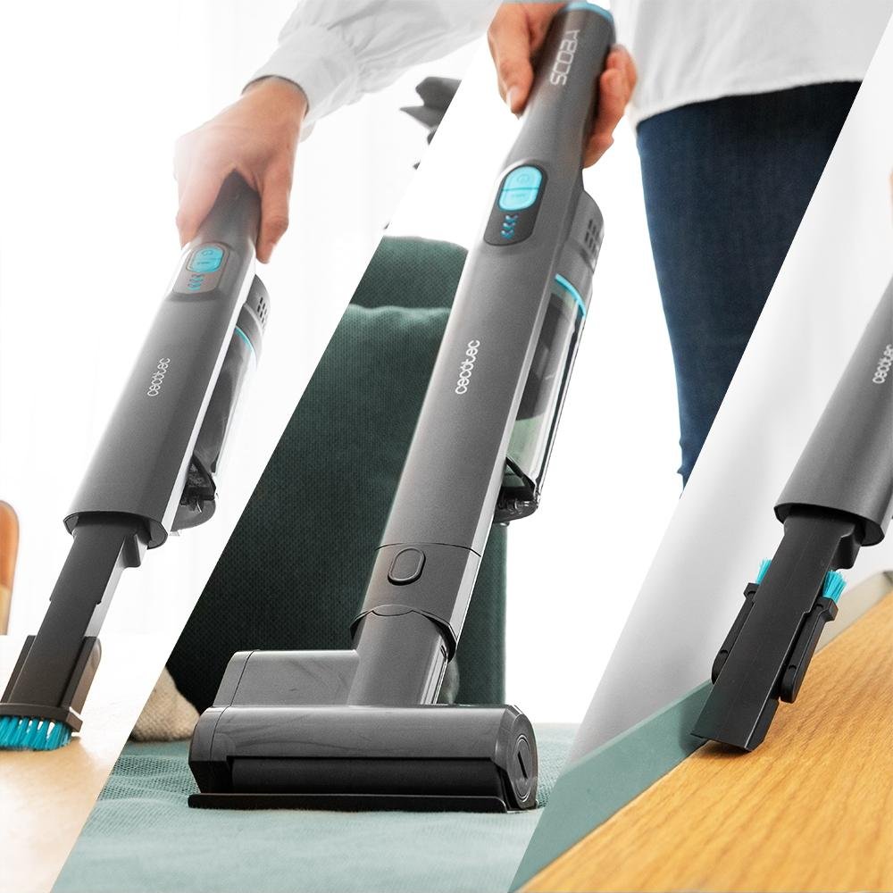 Su kit de accesorios incluye un accesorio 2 en 1 para limpiar muebles y esquinas y dos accesorios, uno normal y otro motorizado, para limpiar de forma eficaz tapicerías y colchones.